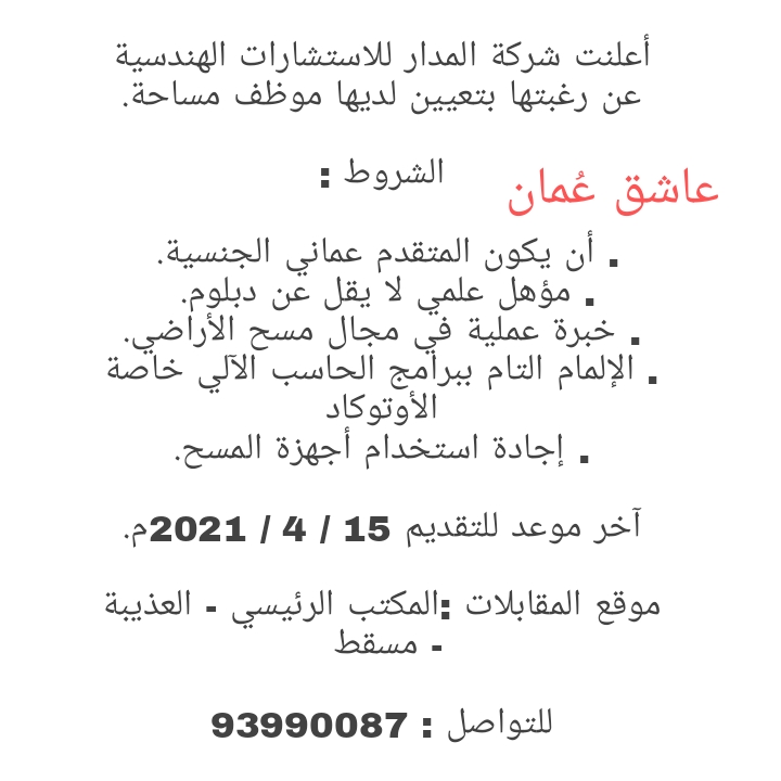 لتصفح المزيد من جديد الوظائف و التدريب بالسلطنة اضغط هنا