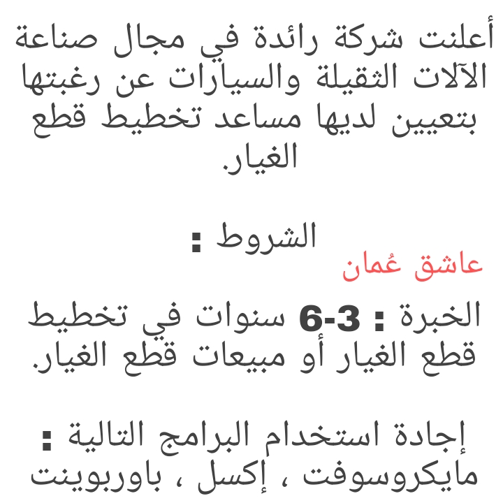 للتواصل وارسال السيرة الذاتية : Recruitmentd61@gmail.com لتصفح المزيد من جديد الوظائف و التدريب بالسلطنة اضغط هنا