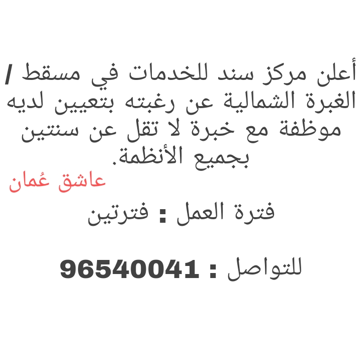 مركز سند للخدمات في مسقط – وظيفة شاغرة