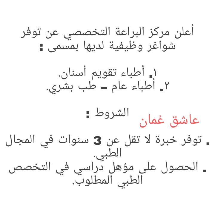 للتواصل وارسال السيرة الذاتية : albaraah123@hotmail.com لتصفح المزيد من جديد الوظائف و التدريب بالسلطنة اضغط هنا