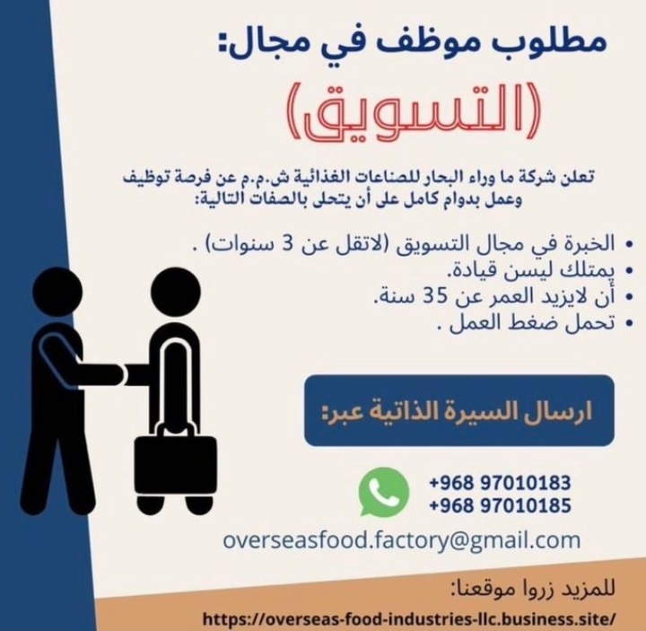أعلنت شركة ما وراء البحار عن رغبتها بتعيين لديها موظفة في مجال التسويق.