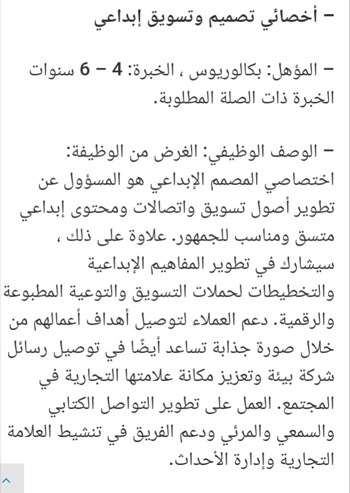 أعلنت الشركة العمانية لخدمات البيئة “بيئة” عن رغبتها بتعيين لديها أخصائي تصميم و تسويق ابداعي.