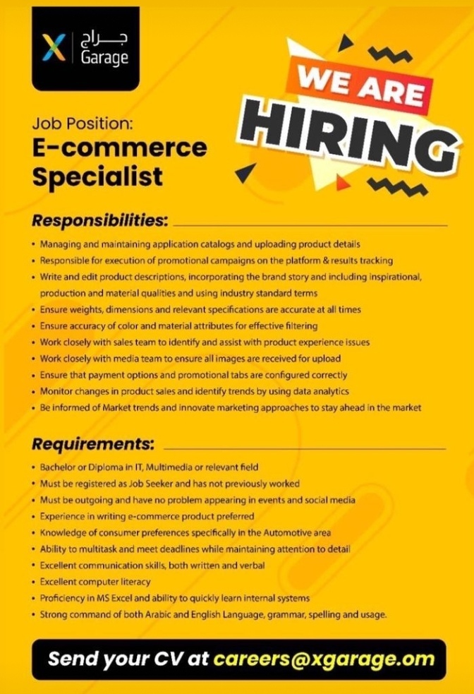 أعلنت شركة إكس جراج عن رغبتها بتعيين لديها :