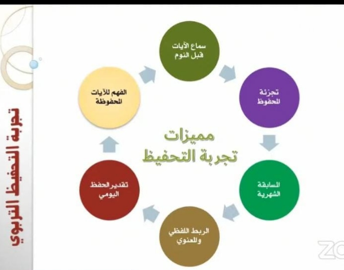 - قراءة جماعية مع الربط والتكرار بين الآيتين الأولى والثانية وكذلك الثالثة، وهكذا حتى ينتهي من المقرر اليومي .