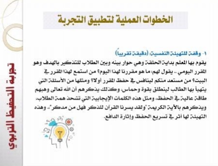 - يجري المعلم مسابقة فيمن يحفظ أولًا؛ حتى لو حفظوا من المرة الأولى فلا بد من التكرار.