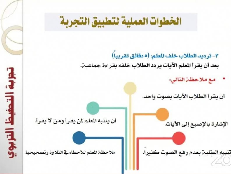 -كذلك التركيز على بداية الآية ونهايتها خاصة مع الآيات الطويلة. - تسميع الآية للطلبة الذين حفظوها.