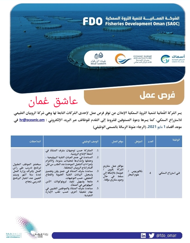 الشركة العمانية لتنمية الثروة السمكية – وظيفة شاغرة