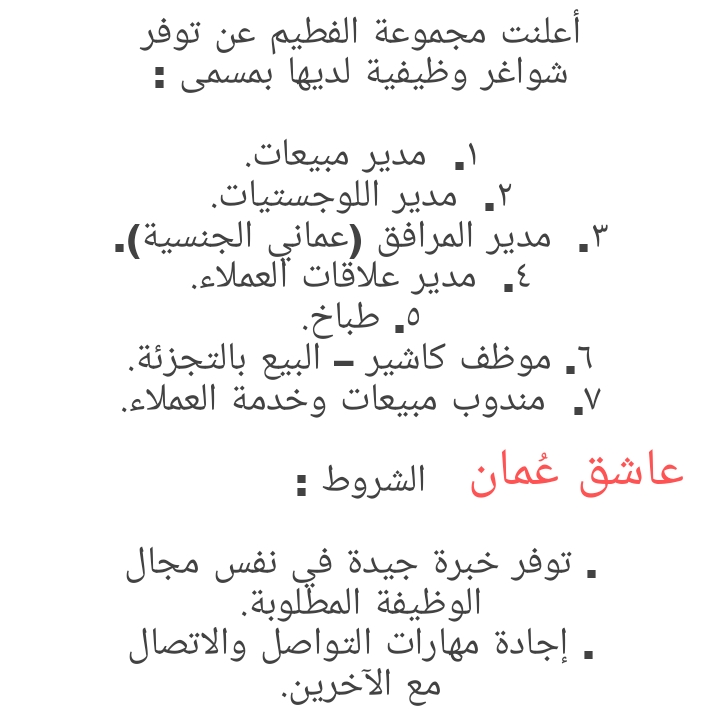 لتصفح المزيد من جديد الوظائف و التدريب السلطنة اضغط هنا