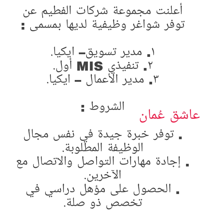 لتصفح المزيد من جديد الوظائف و التدريب بالسلطنة اضغط هنا