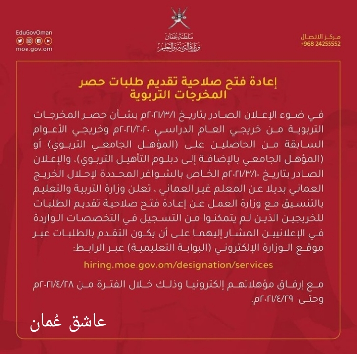 لتصفح المزيد من جديد الوظائف و التدريب بالسلطنة اضغط هنا