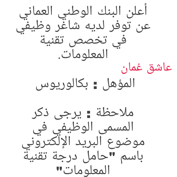 للتواصل وارسال السيرة الذاتية : careers@nbo.co.om لتصفح المزيد من جديد الوظائف و التدريب بالسلطنة اضغط هنا