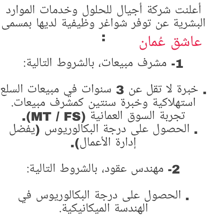 لتصفح المزيد من جديد الوظائف و التدريب بالسلطنة اضغط هنا