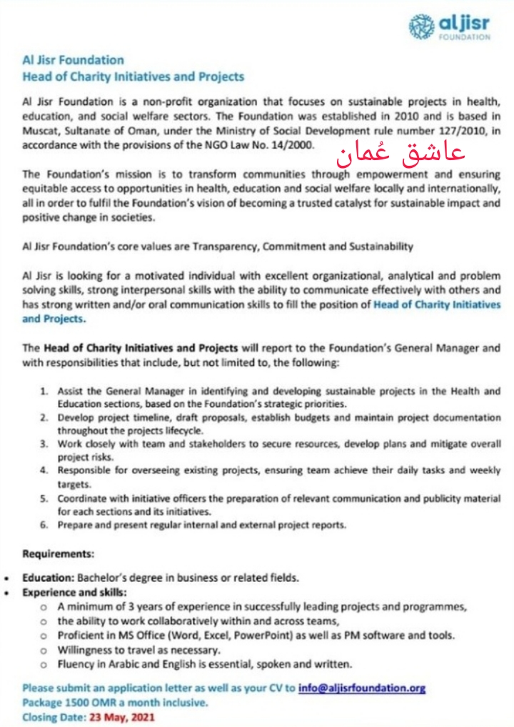 مؤسسة الجسر – وظيفة شاغرة