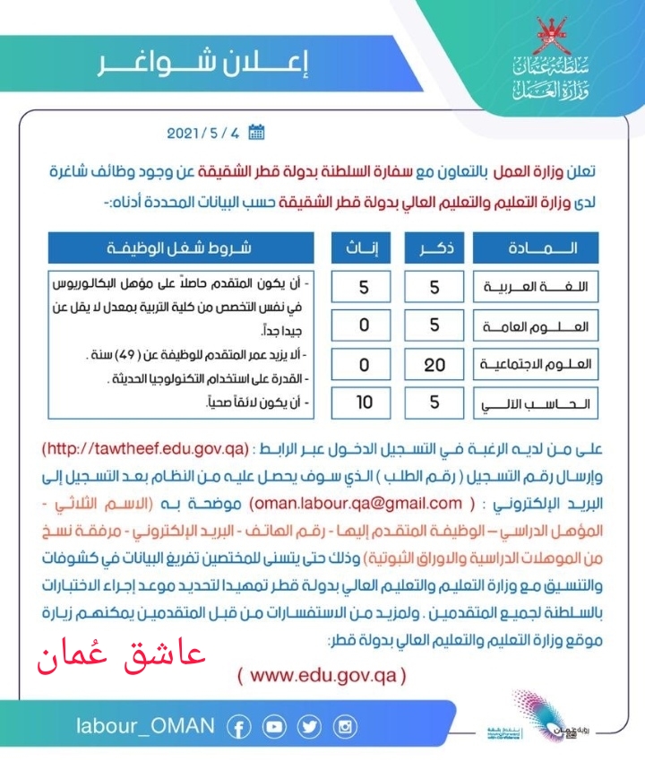 الإعلان عن وظائف شاغرة للعمانيين بدولة قطر