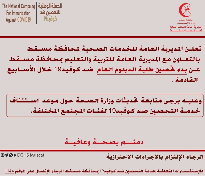 ‏الإعلان عن تطعيم طلبة الدبلوم العام ضد ‎كوفيد 19
