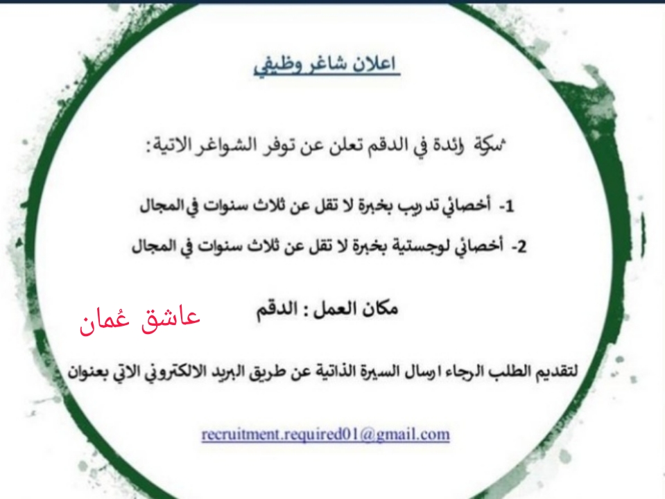 شركة رائدة في الدقم – وظائف شاغرة
