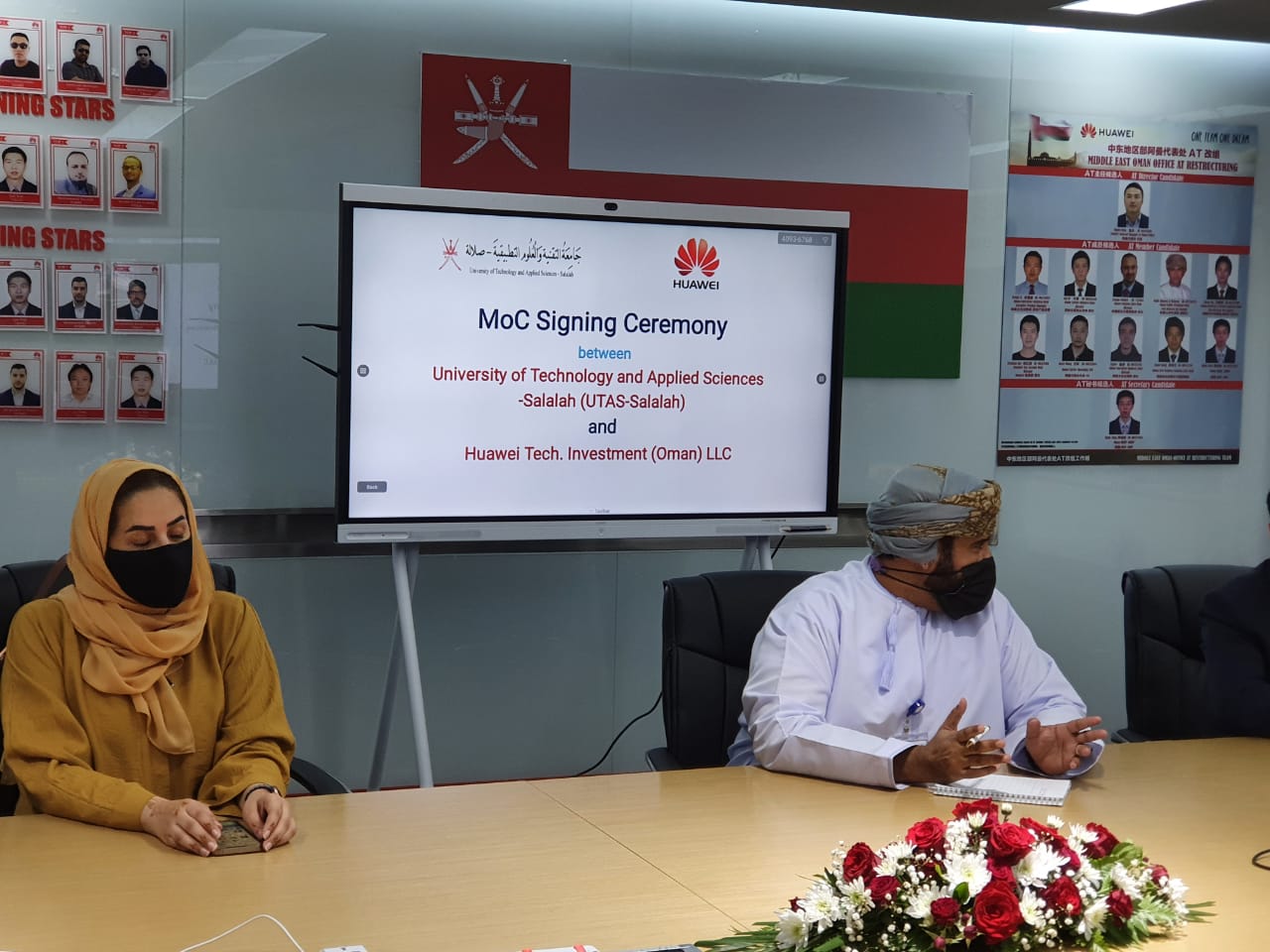 وقد وقّع الاتفاقية كل من الدكتور محمد بن راشد المعمري، عميد الكلية التقنية بصلالة ، والسيد روبن تشن ، الرئيس التنفيذي لشركة هواوي للاستثمارات التقنية في عمان، حيث كان التوقيع عبر اتصال مرئي من قبل الطرفين.