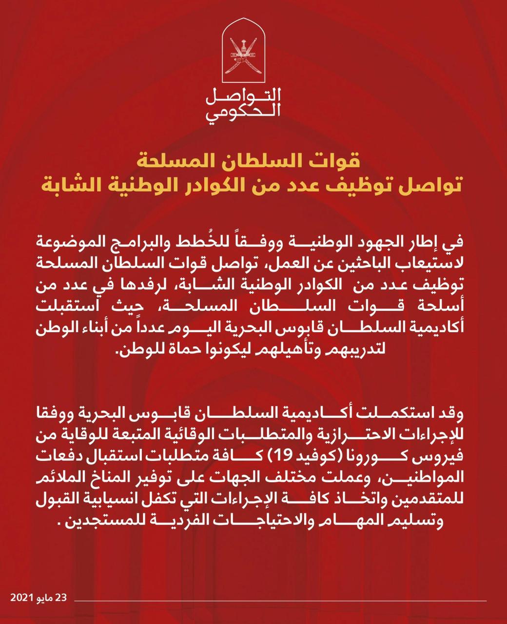 قوات السلطان المسلحة تواصل توظيف عدد من الكوادر الوطنية الشابة
