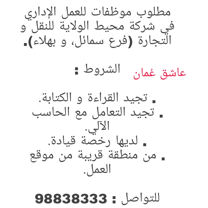 لتصفح المزيد من جديد الوظائف و التدريب بالسلطنة اضغط هنا