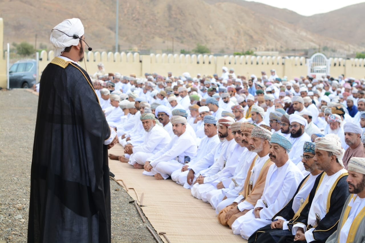وقد أمّ المصلين فضيلة القاضي محمد بن سالم الهنائي الذي بدأ الخطبة بالتكبير والتسبيح لله