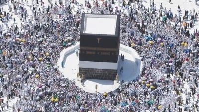 An aerial view of the Grand Mosque during the annual Haj pilgrimage, in the holy city of Mecca, Saudi Arabia, on