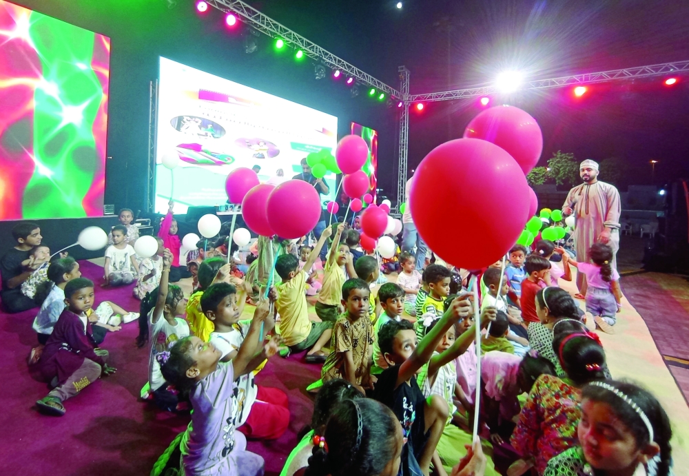 وتتلون خشبة المسرح بباقات متنوعة من الفعاليات والمسابقات والوصلات الغنائية والمقطوعات المسرحية واستعراضات للمواهب والقدرات ؛ ليتلألأ الفرح والبهجة على وجوه الأطفال من خلال التفاعل و التشارك مع الفقرات و المسابقات والألعاب، ويتم توزيع عدد من الهدايا والأعلام لجعل الأطفال يعيشون أجواء رائعة بصحبة عائلاتهم و ذويهم.