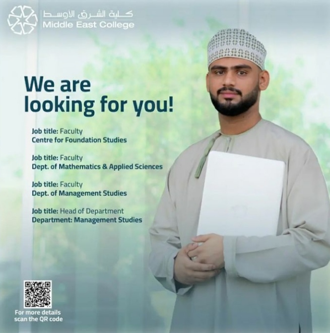 أعلنت كلية الشرق الأوسط عن رغبتها بتعيين لديها :