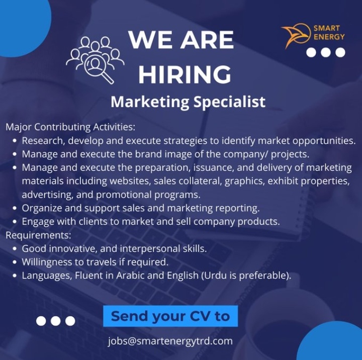 أعلنت شركة الطاقة الذكية للتجارة عن توفر لديها فرصة تدريب مقرونة بالتوظيف للعمل كإخصائي تسويق .
