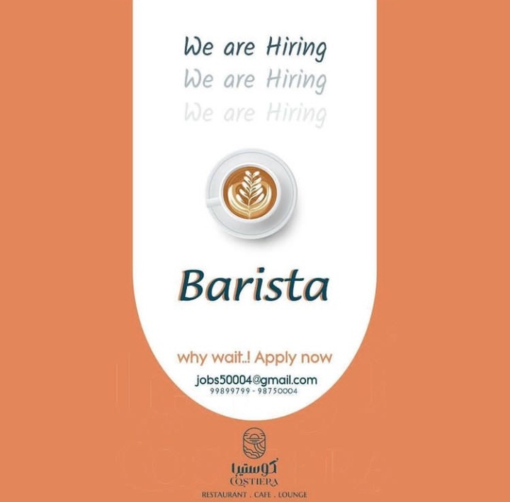 أعلن مقهى كوستيرا عن رغبته بتعيين لديه باريستا .