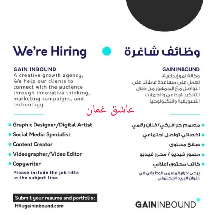 شركة Gain Inbound عن توفر شواغر وظيفية لديها بمسمى :