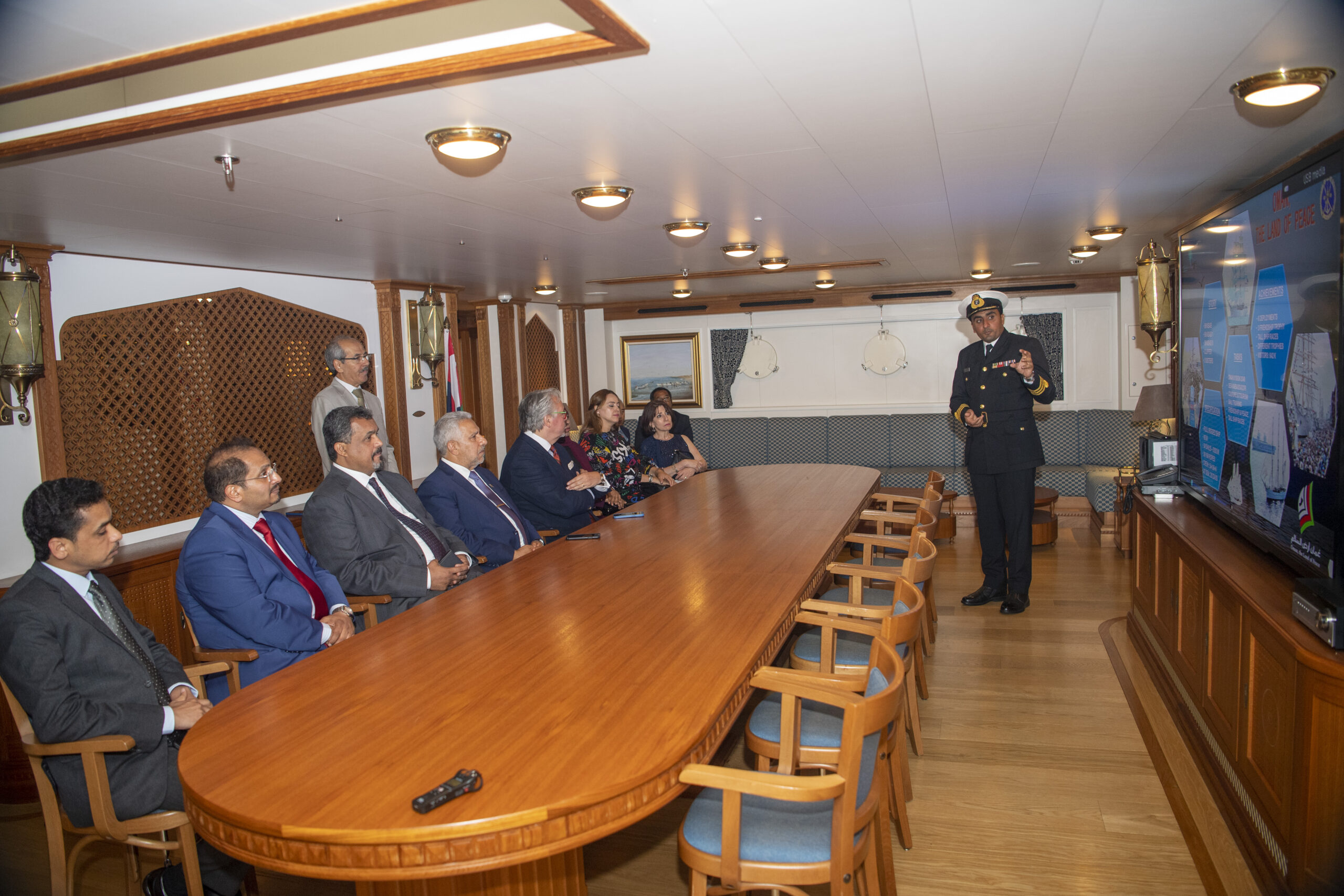 وكان في مقدمة مستقبلي السفينة لدى وصولها إلى مملكة بلجيكا سعادة نجيم بن سليمان العبري سفير سلطنة عُمان المعتمد لدى مملكة بلجيكا ورئيس بعثتها لدى الاتحاد الأوروبي، واستمع إلى إيجاز عن خط سير رحلة السفينة والموانئ التي توقفت بها، والأهداف الوطنية لهذه الرحلة.