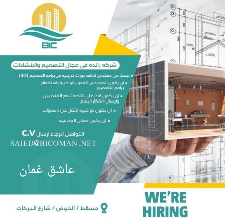 أعلنت شركة رائدة في مجال التصميم و الإنشاءات عن رغبتها بتعيين لديها مهندس لإقامة دورات تدريبية في برنامج التصميم (3D).