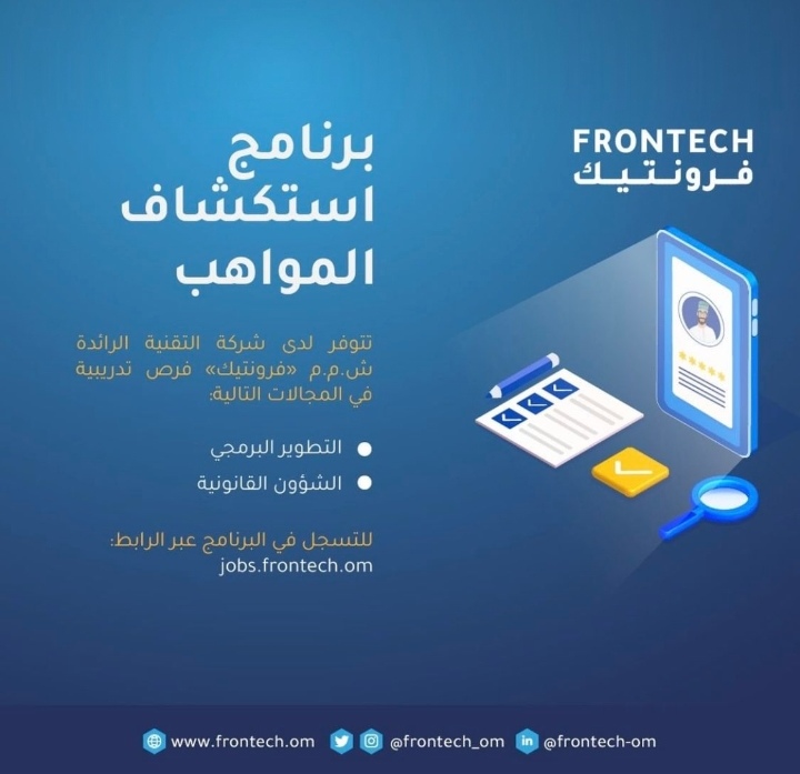 أعلنت شركة فرونتك تعلن عن توفر فرص تدريبية في المجالات التالية