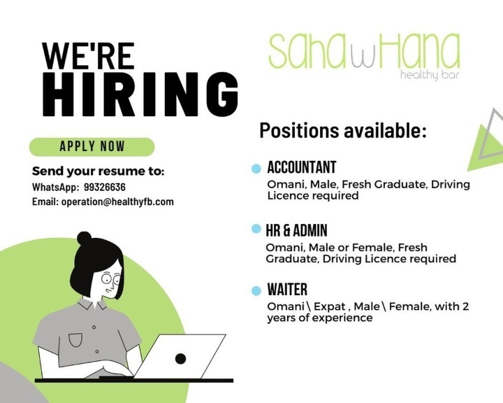أعلنت شركة الاغذية والمشروبات الصحية عن رغبتها بتعيين لديها :