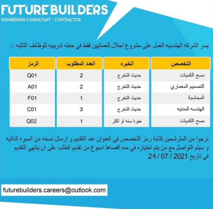 أعلنت الشركة الهندسية للبناء المقبل عن فرص تدريبية