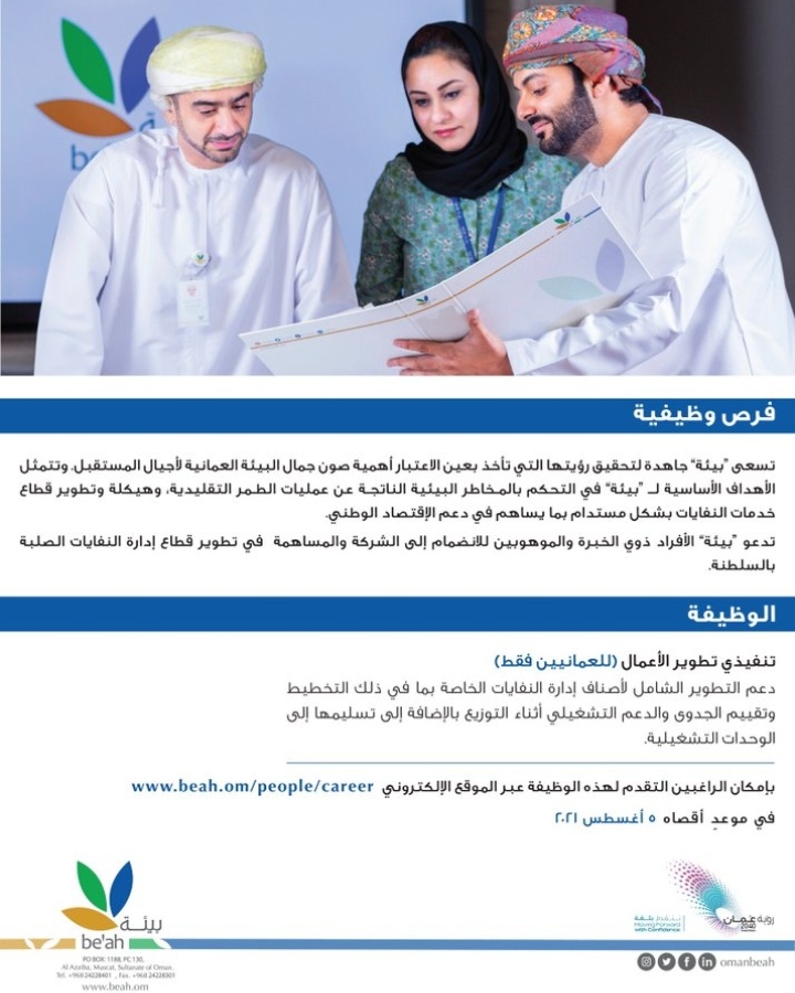 وظائف شاغرة في الشركة العمانية لخدمات البيئة (بيئة) 3