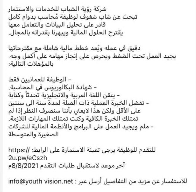 وظيفة شاغرة في شركة رؤية الشباب للخدمات و الاستثمار 3
