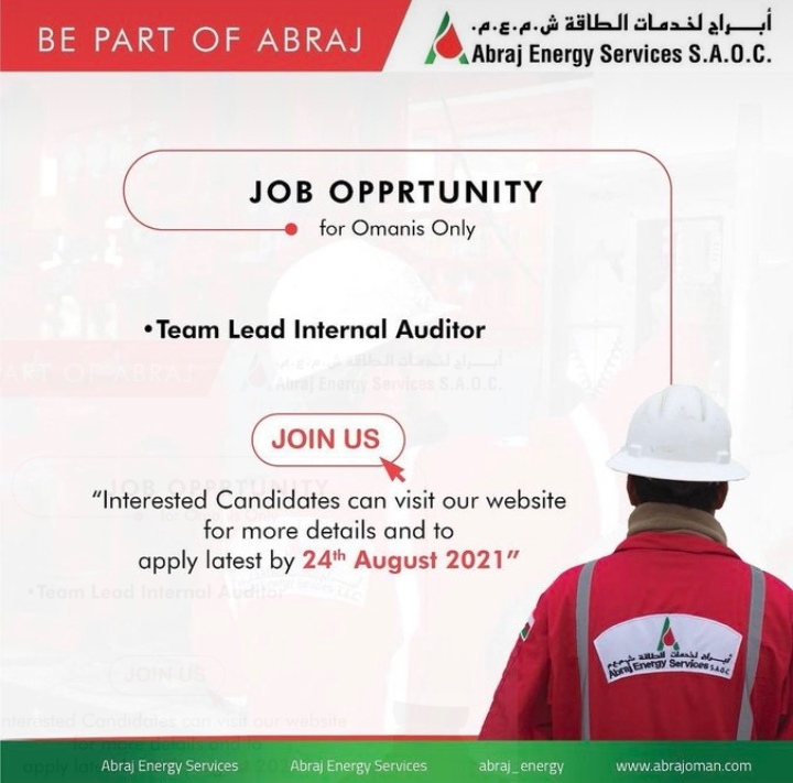أعلنت شركة أبراج لخدمات الطاقة تعلن عن توفر شاغر وظيفي لديها بمسمى رئيس فريق المدقق الداخلي ووظائف أخرى حسب التفاصيل أدناه.