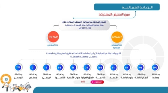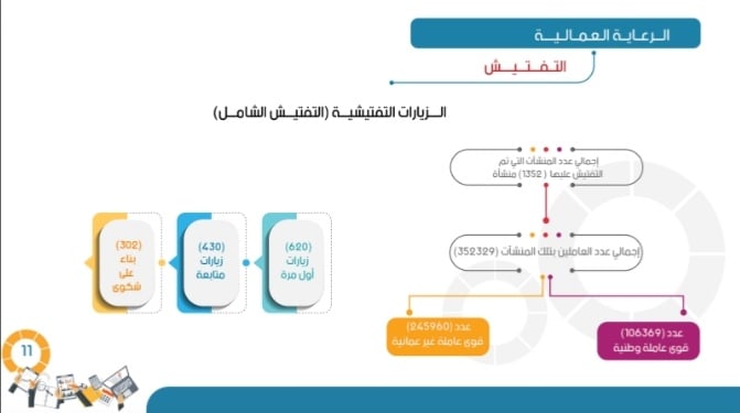 نفذت الوزارة خلال النصف الأول من عام 2021 مجموعة من الإجراءات المختلفة بسوق العمل وتنمية الموارد البشرية التي أعلنت عنها الوزارة من خلال خطتها لعام 2021