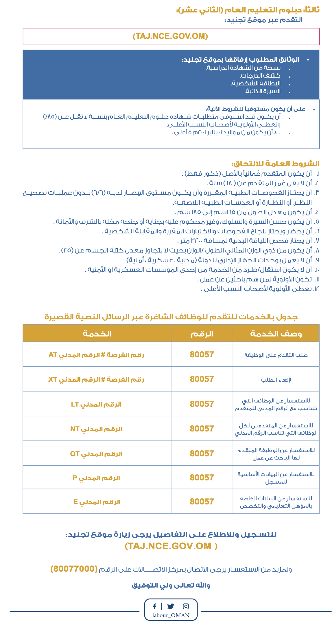 التقدم عبر موقع تجنيد: https://taj.nce.gov.om/