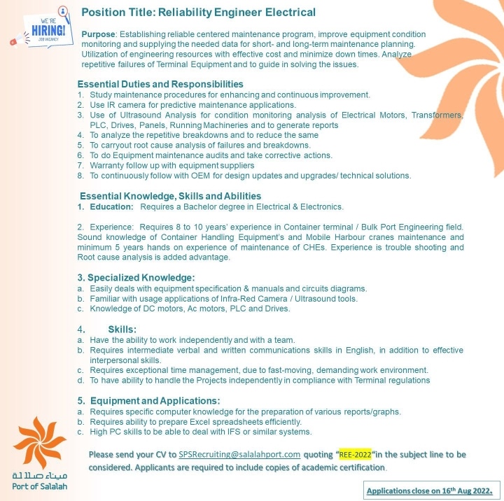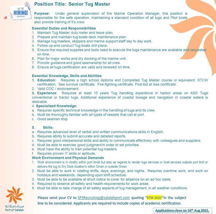 أعلن ميناء صلالة يعلن عن رغبته بالتعيين في بعض الوظائف حسب المرفقات أدناه :