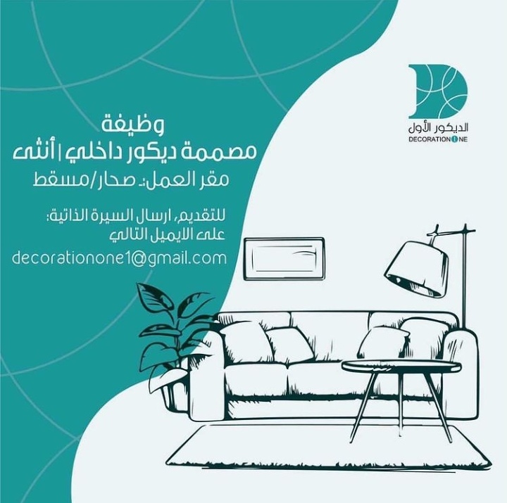أعلنت شركة الديكور الأول عن رغبتها بتعيين لديها مصممة ديكور داخلي