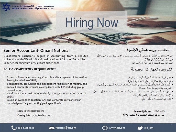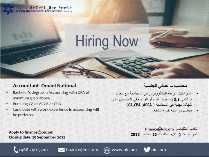 أعلنت مؤسسة عمان للإستثمار عن رغبتها بتعيين لديها :