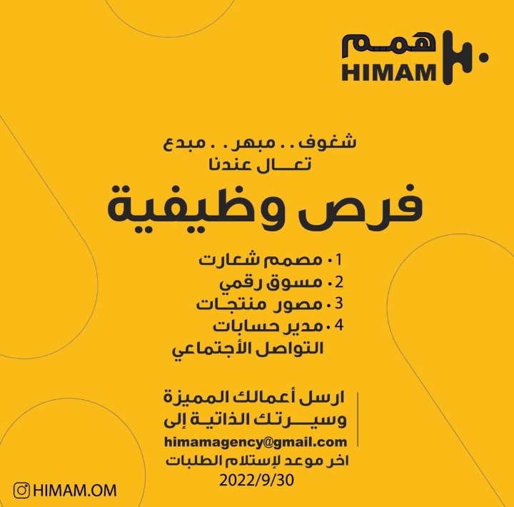 أعلنت وكالة همم عن رغبتها بتعيين لديها :