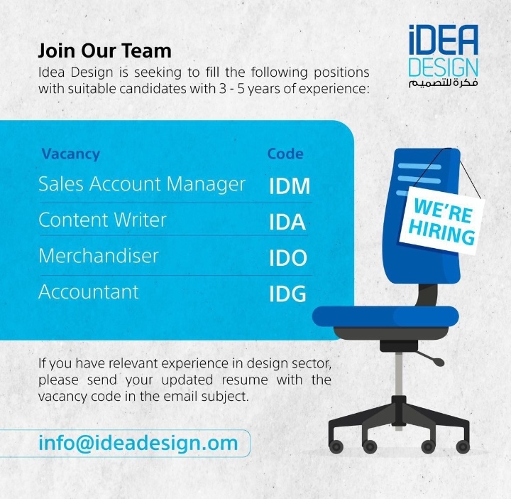 أعلنت شركة فكرة للتصميم عن رغبتها بتعيين لديها :