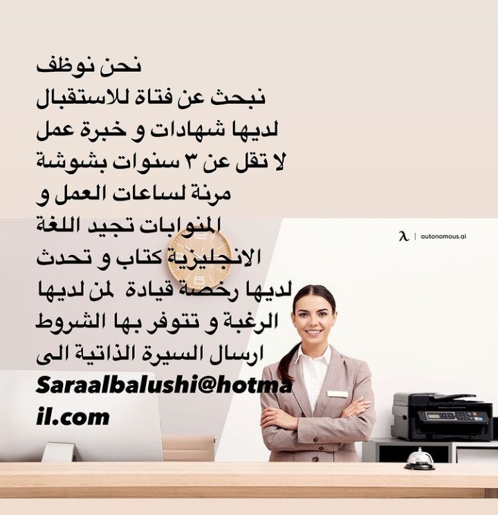 أعلن مركز سارة للجمال عن رغبته بتعيين لديه موظفة استقبال.
