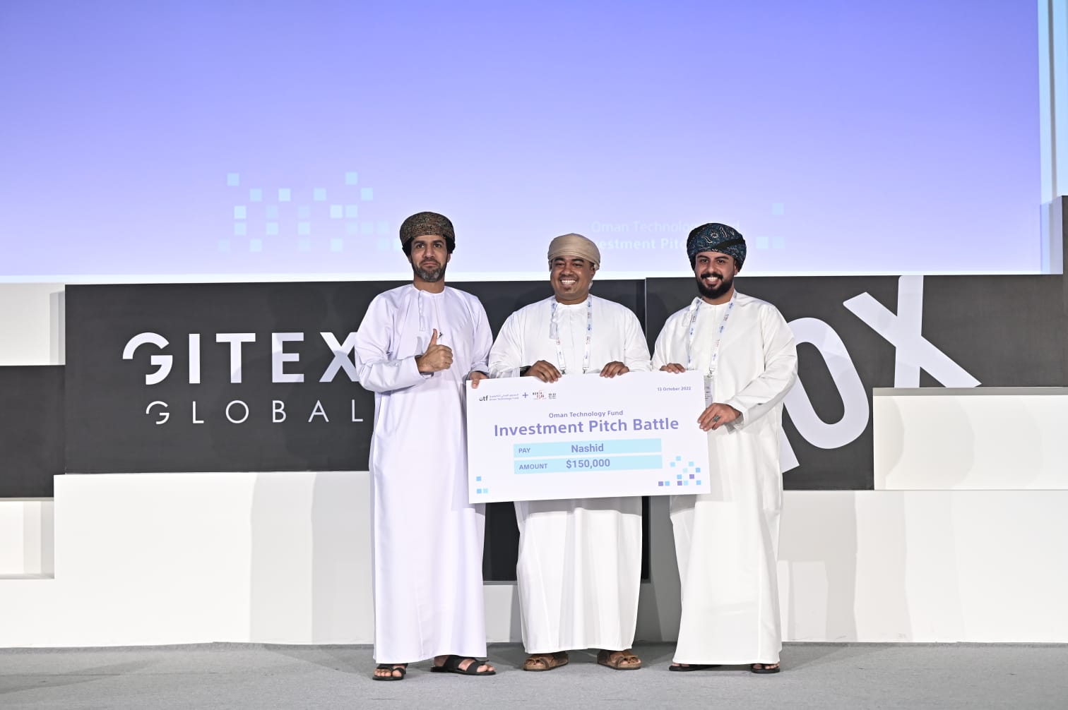وفي ختام المشاركة أعلن الصندوق العماني للتكنولوجيا (أحد شركات مجموعة إذكاء) عن الشركات الفائزة لفرص “الاستثمار بمليون دولارأمريكي” من بين نحو30 شركة ناشئة تنافست في النسخة الثانية والأربعون من معرض جيتكس جلوبال ٢٠٢٢م.