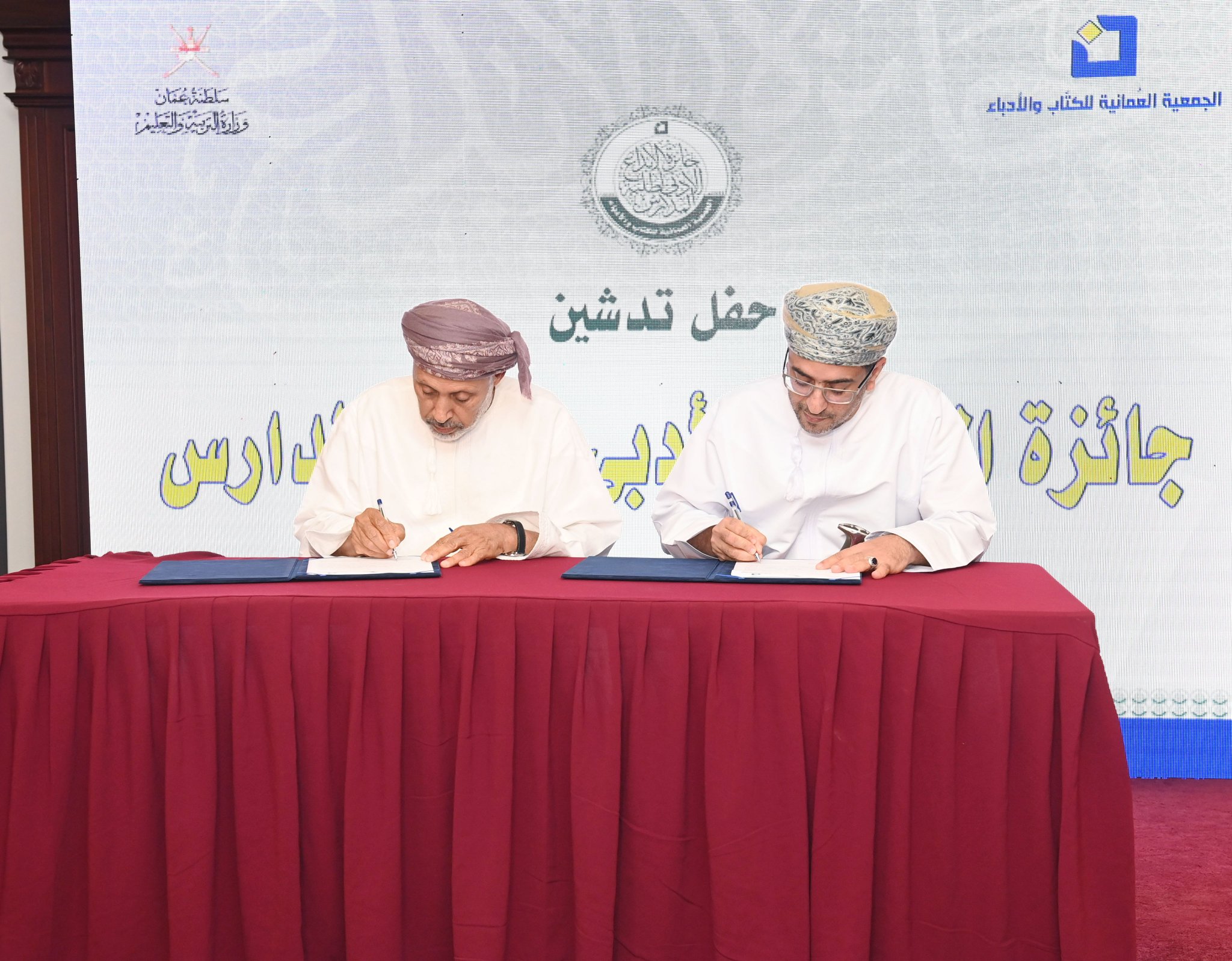وعلى هامش حفل إطلاق الجائزة تم التوقيع على اتفاقية تعاون بين الجمعية العُمانية للكُتّاب والأدباء ووزارة التربية والتعليم، وقّعها من جانبالجمعية المكرم المهندس سعيد بن محمد الصقلاوي رئيس مجلس إدارة الجمعية، فيما وقّعها من جانب الوزارة سعادة الدكتور عبد الله بنخميس أمبوسعيدي وكيل وزارة التربية والتعليم للتعليم.