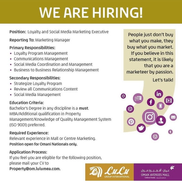 وظيفة تنفيذي تسويق وسائل التواصل الاجتماعي في مجموعة اللولو العالمية