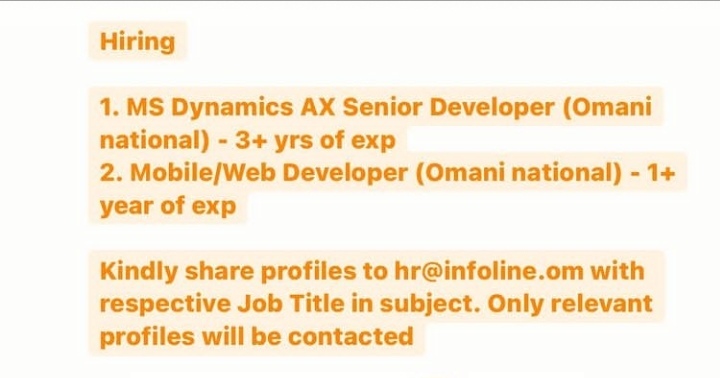 أعلنت شركة إنفولاين عن رغبتها بتعيين لديها :